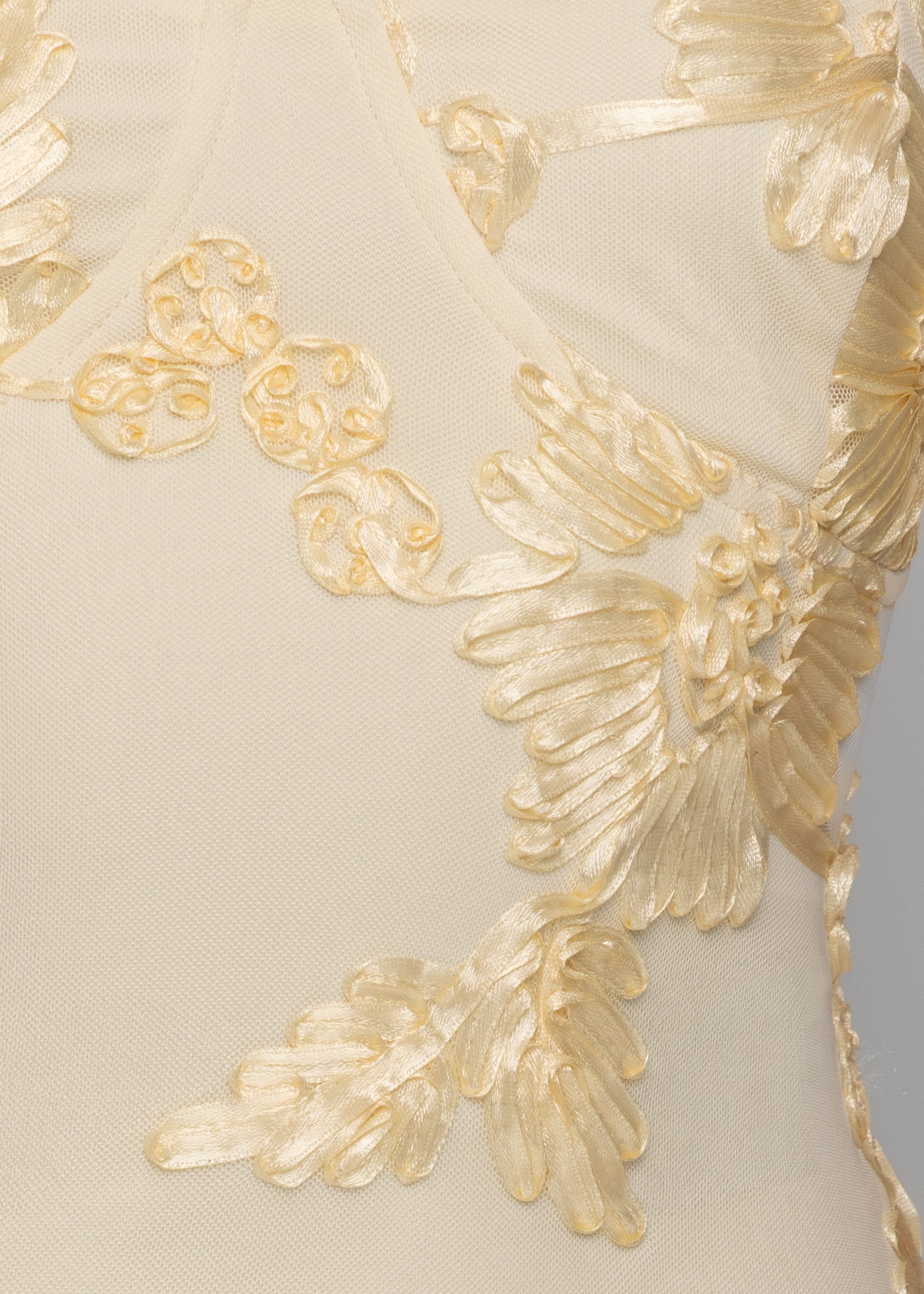 • Embroidered Mesh Fabric: Delicate texture with a refined finish
