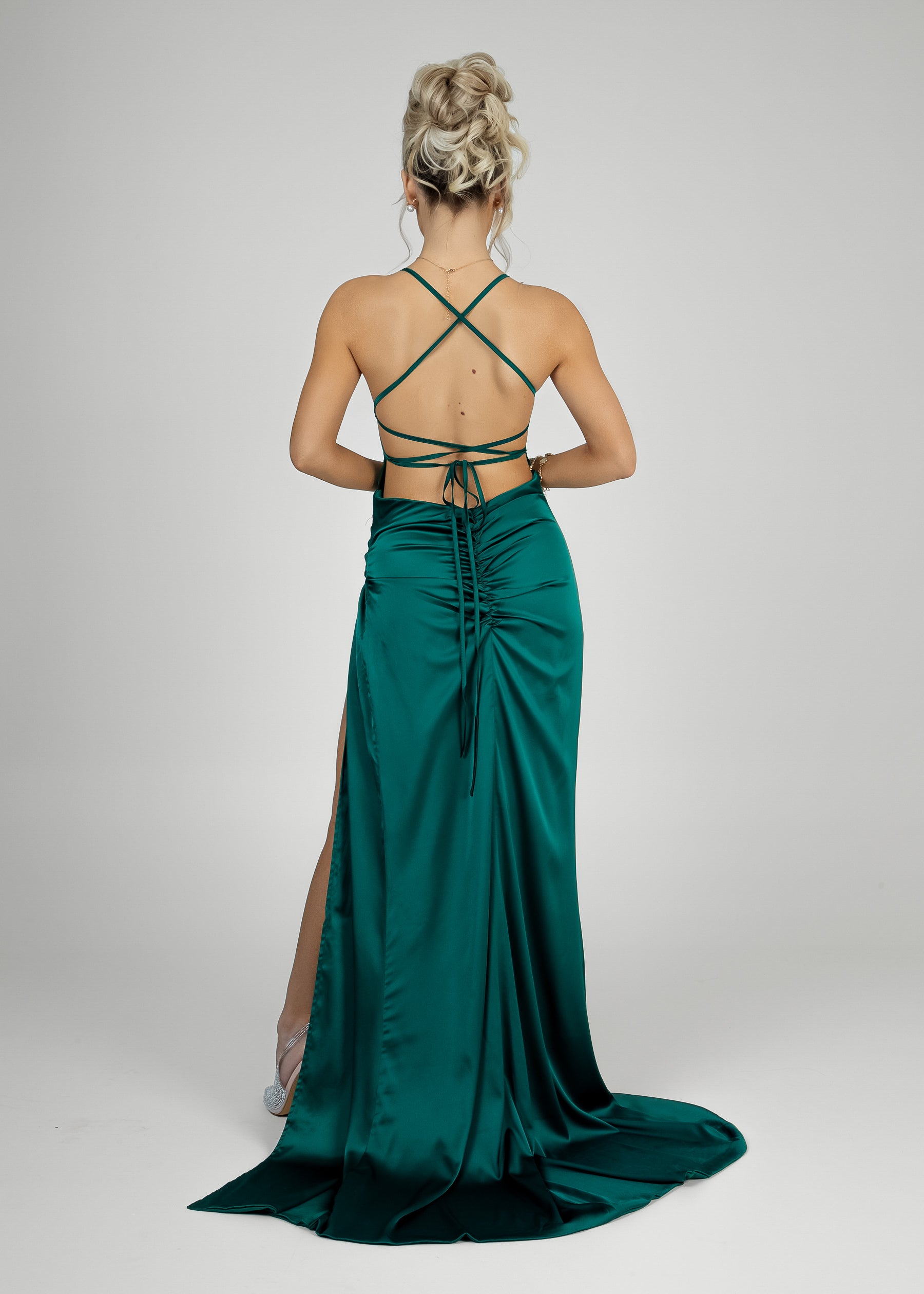 Effortlessly elegant with a modern edge, the Luxe Life gown is designed for understated sophistication. Featuring thigh high split, this figure-skimming silhouette drapes beautifully over the body, enhanced by soft ruching through the waist and back for a flattering finish. Paired with an open-back design, this dress is perfect for formal events, evening occasions, or elevated celebrations.