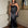 Women's black maxi dress embellished with silver glitter patterns all over fabric. Spaghetti straps and thigh high leg slit. Model is 5ft2' and wears a size 6.