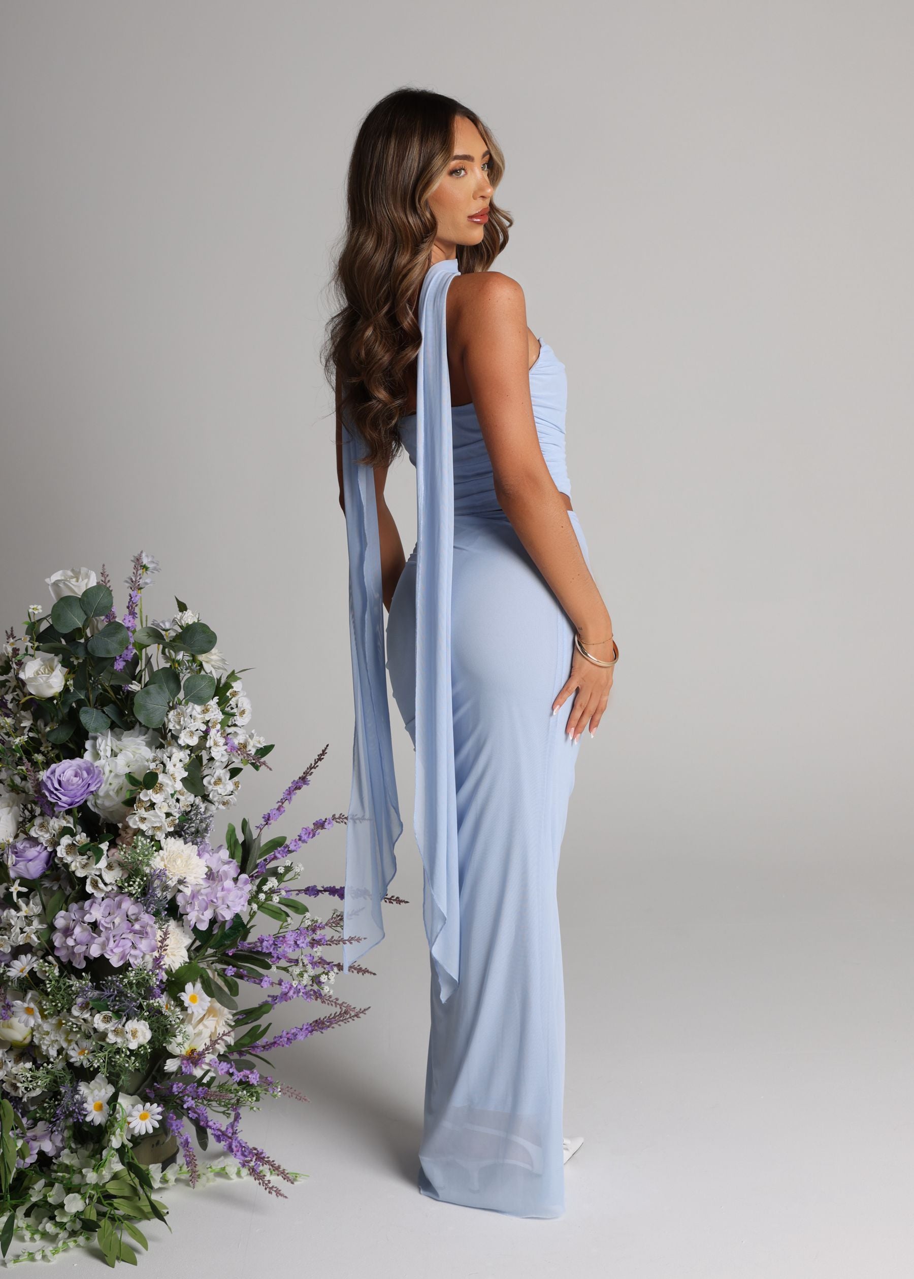 Elevate your style game with our Finding My Power Two Piece with Neck Scarf! Featuring a figure-flattering corset style top and a stunning maxi skirt made from airy mesh fabric, this set is perfect for making a statement. The included neck scarf adds a touch of elegance to complete the look. Empower yourself and stand out in this bold blue ensemble!
