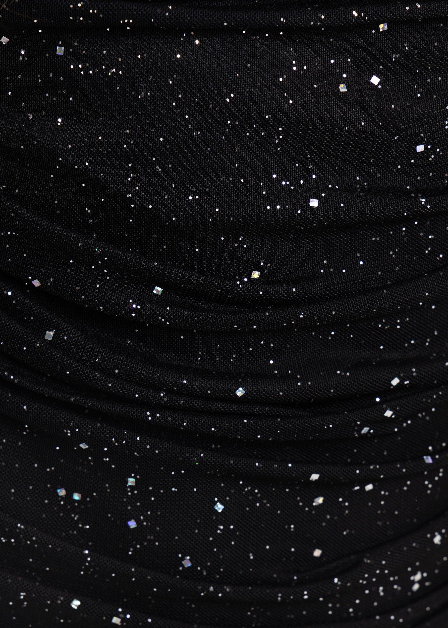 Samantha Sparkle Off Shoulder Mesh Mini Dress - Black