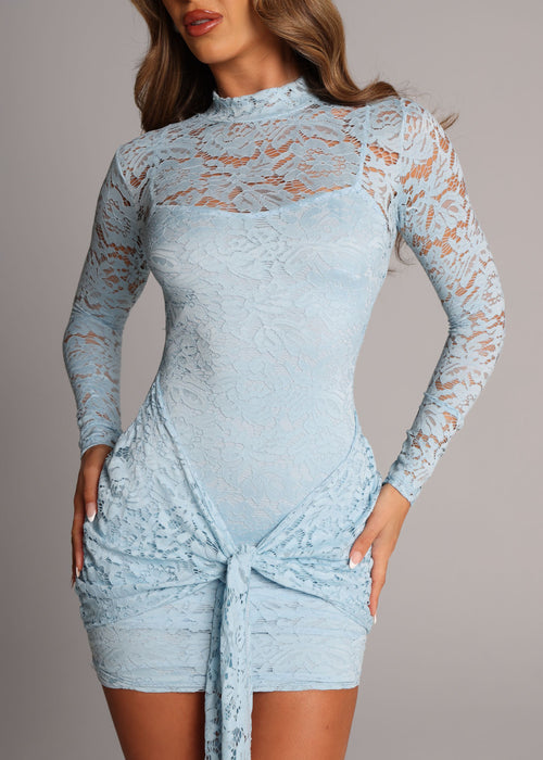 Love Club Lace High Neck Tie Detail Dress - Blue
